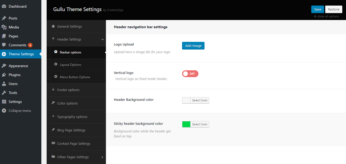 Header Settings Estimated reading: 1 minute 601 views In the Header settings section, you will get a lot of header customization options. In this section, you can change the logo and set the menu button, navigation bar settings etc.